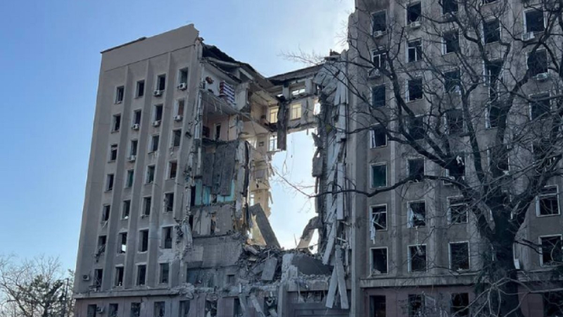 The State Emergency Service reported that on March 29, at about 08:45 in Nikolaev, as a result of shelling and falling into a 9-story administrative the building was destroyed in its central section.