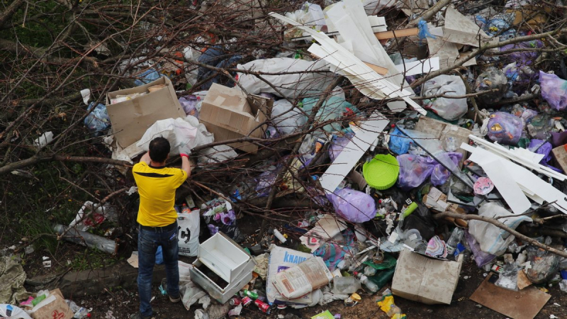 Alexander helps own son to pick up things. The man said that his house was completely destroyed.