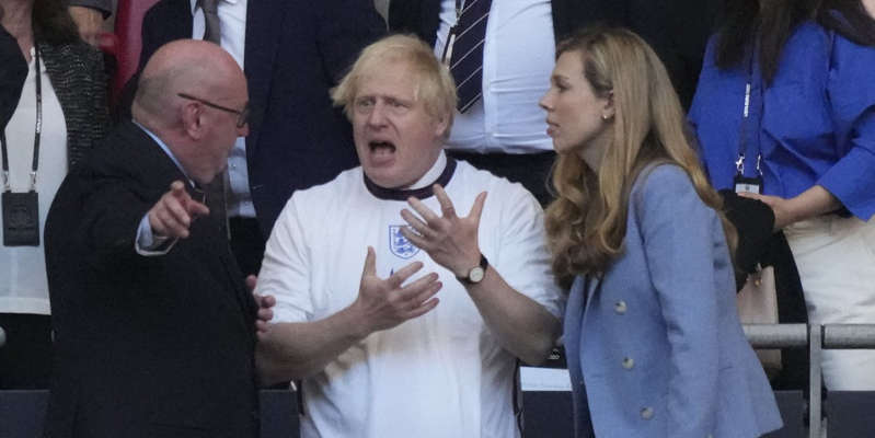 Big party at Wembley Stadium! England is in the European Championship final, and Prime Minister Boris Johnson cheered with euphoria.