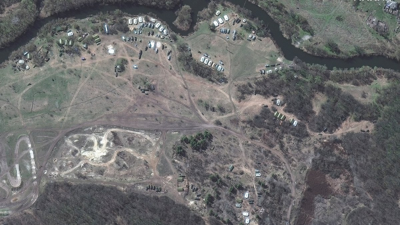 The satellite took pictures on April 11. Russia transported equipment near the settlements of Soloty and Valuiki.