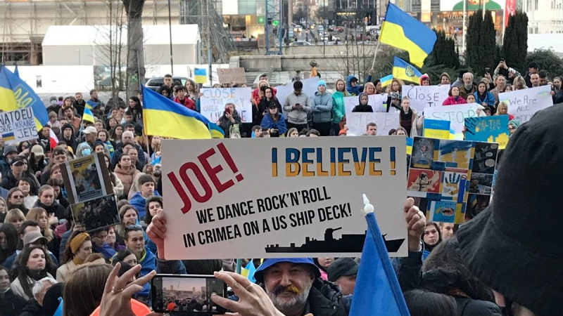 The protesters glorified the Armed Forces of Ukraine, asked to close the sky over Ukraine and called on Joe Biden to provide Ukraine with more weapons. Subsequently, people lit lanterns.